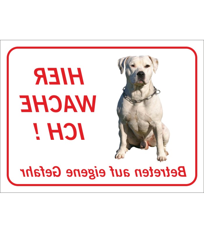 Die Perro Pitbull 'Hier wache ich'-Aufkleber (rot) sind in verschiedenen Größen erhältlich. Die Aufkleber sind sowohl für den Innen- wie Außeneinsatz geeignet.