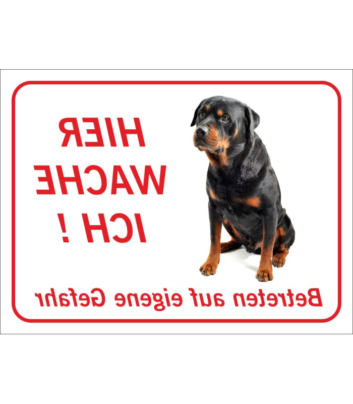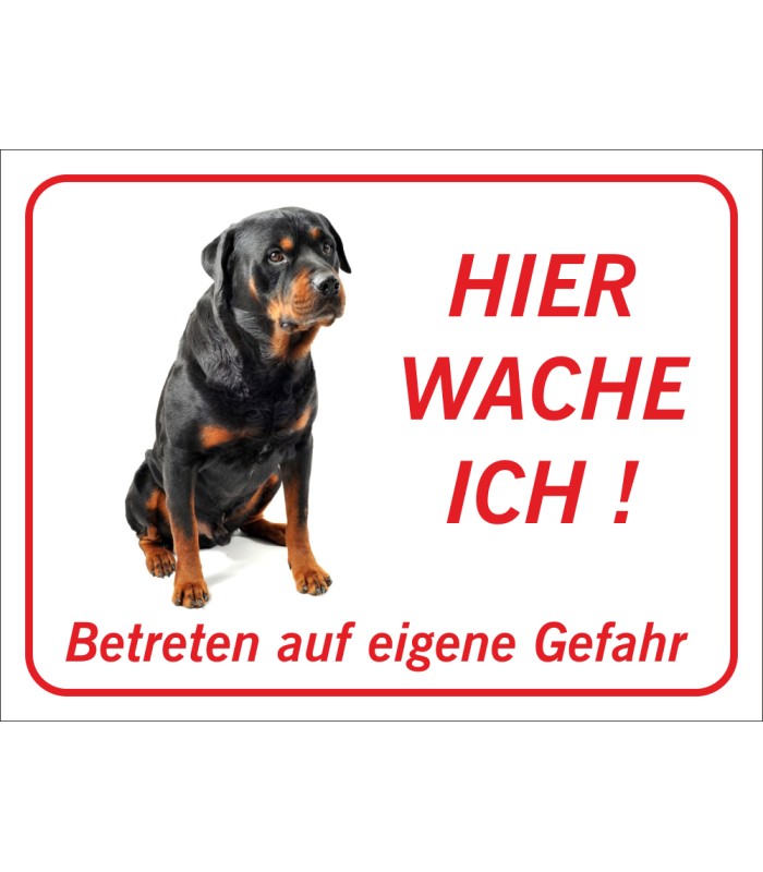 Die Rottweiler 'Hier wache ich'-Aufkleber (rot) sind in verschiedenen Größen erhältlich. Die Aufkleber sind sowohl für den Innen- wie Außeneinsatz geeignet.