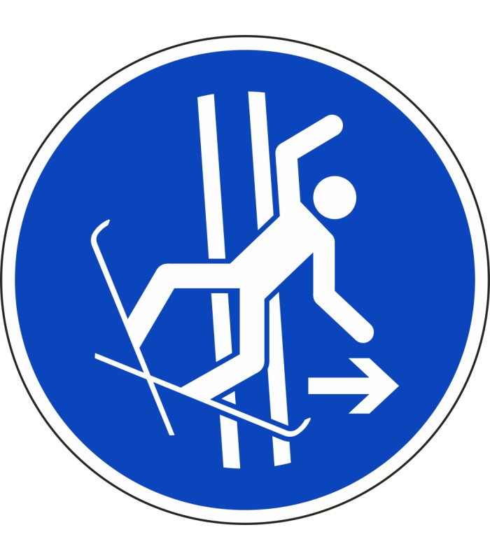 Die Schilder 'Im Fall eines Sturzes Schleppspur sofort verlassen' gem. ISO-7010 werden aus hochwertigem weißem Kunststoff hergestellt und sind in unterschiedlichen Größen erhältlich.