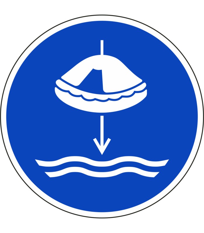 Die Schilder 'Rettungsfloß fieren beim Aussetzvorgang' gem. ISO-7010 werden aus hochwertigem weißem Kunststoff hergestellt und sind in unterschiedlichen Größen erhältlich.