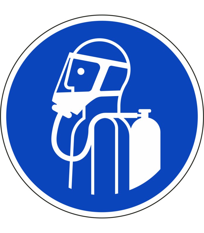 Die Schilder 'Unabhängiges Atemschutzgerät tragen' gem. ISO-7010 werden aus hochwertigem weißem Kunststoff hergestellt und sind in unterschiedlichen Größen erhältlich.