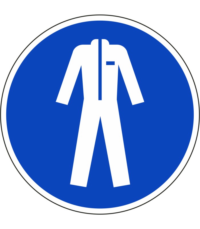 Die Schilder 'Schutzkleidung benutzen' gem. ISO-7010 werden aus hochwertigem weißem Kunststoff hergestellt und sind in unterschiedlichen Größen erhältlich.
