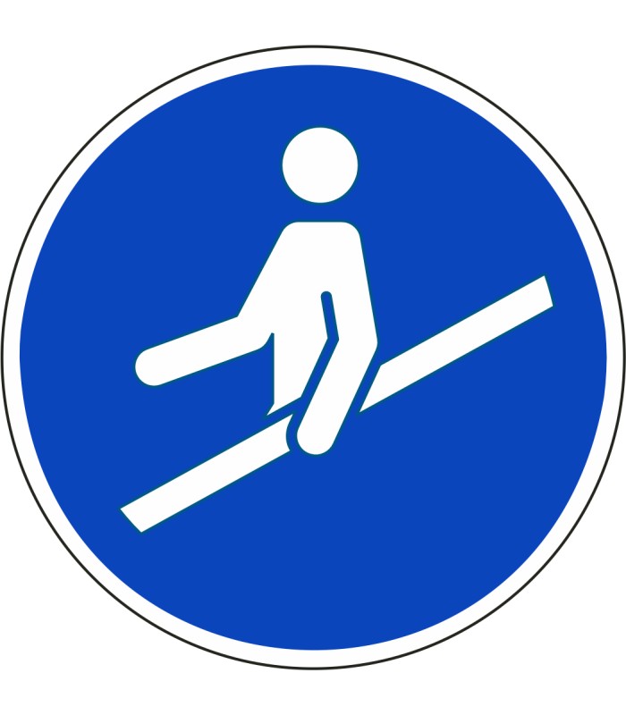 Die Schilder 'Handlauf benutzen' gem. ISO-7010 werden aus hochwertigem weißem Kunststoff hergestellt und sind in unterschiedlichen Größen erhältlich.