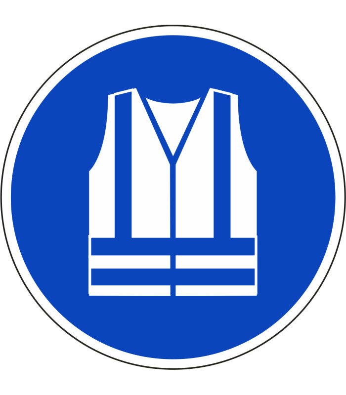 Die Schilder 'Warnweste benutzen' gem. ISO-7010 werden aus hochwertigem weißem Kunststoff hergestellt und sind in unterschiedlichen Größen erhältlich.