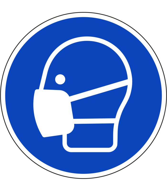 Die Schilder 'Maske benutzen' gem. ISO-7010 werden aus hochwertigem weißem Kunststoff hergestellt und sind in unterschiedlichen Größen erhältlich.