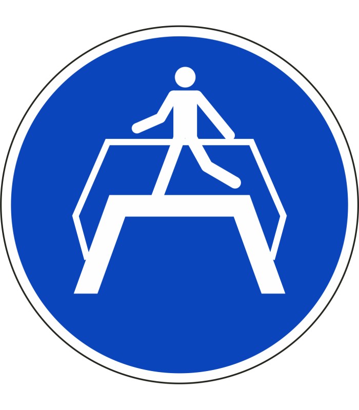 Die Schilder 'Übergang benutzen' gem. ISO-7010 werden aus hochwertigem weißem Kunststoff hergestellt und sind in unterschiedlichen Größen erhältlich.
