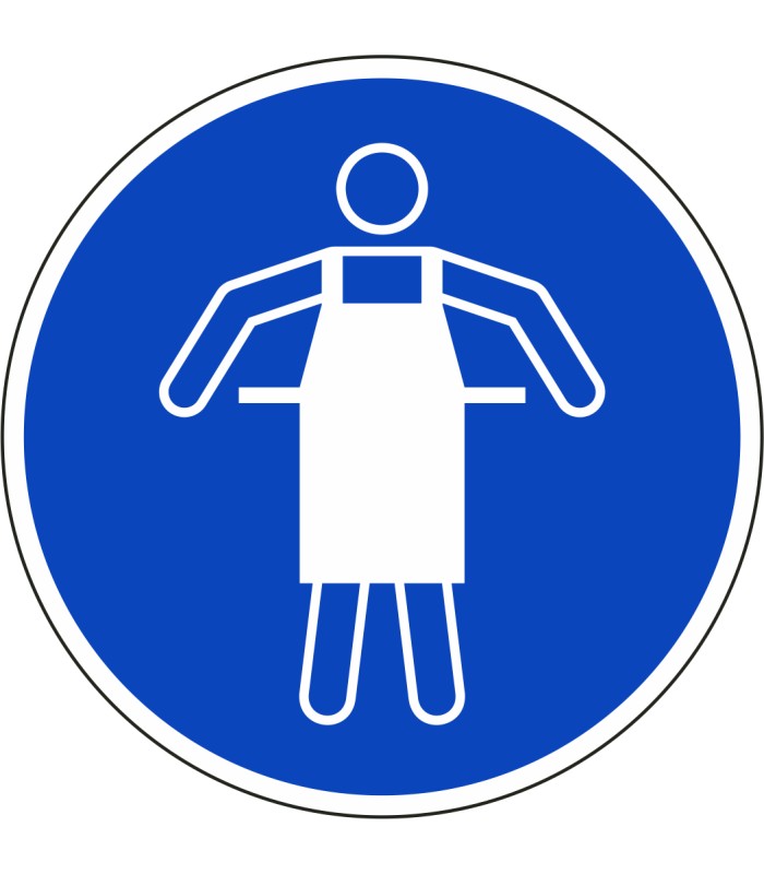 Die Schilder 'Schutzschürze benutzen' gem. ISO-7010 werden aus hochwertigem weißem Kunststoff hergestellt und sind in unterschiedlichen Größen erhältlich.