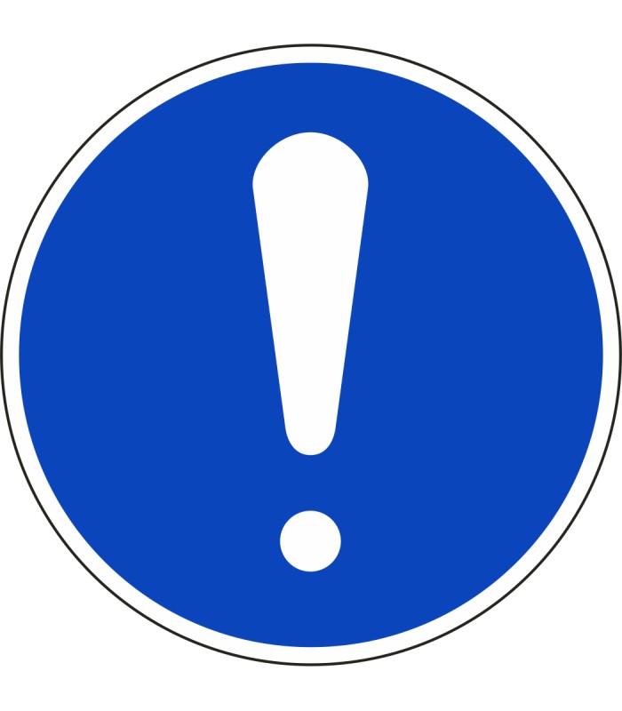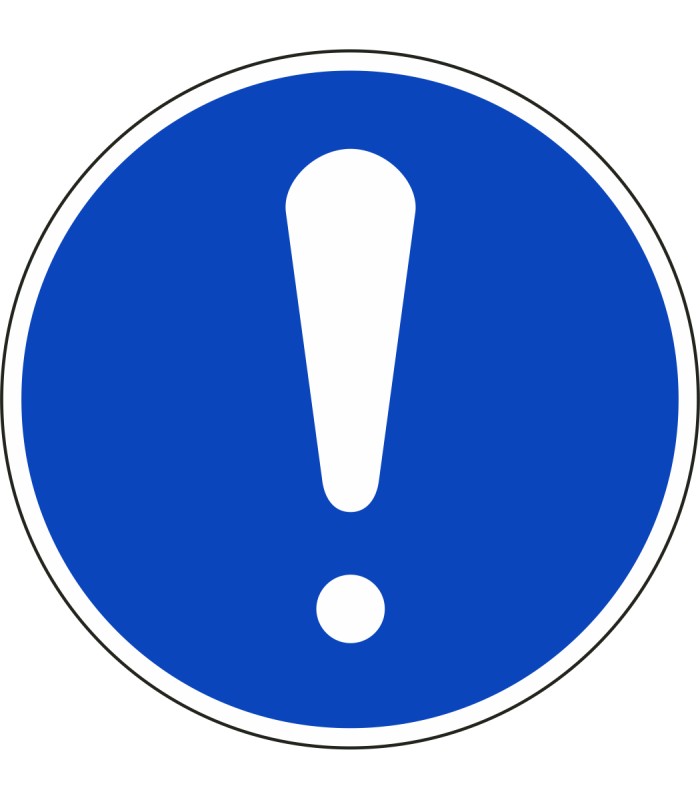 Die Aufkleber 'Allgemeines Gebot' gem. ISO-7010 sind in verschiedenen Größen und auch spiegelverkehrt erhältlich.