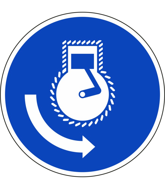 Die Aufkleber 'Motor starten bei Aussetzvorgang' gem. ISO-7010 sind in verschiedenen Größen und auch spiegelverkehrt erhältlich.