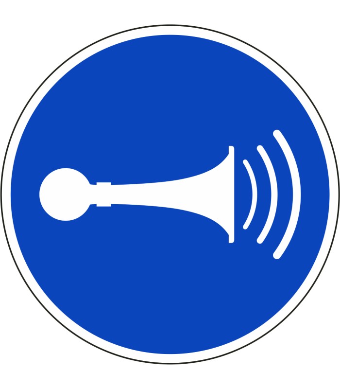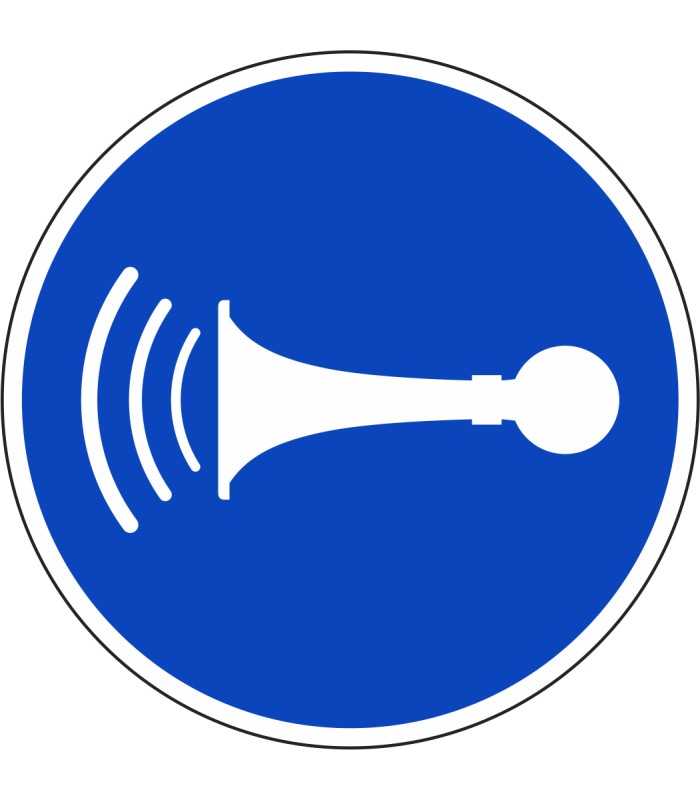 Die Aufkleber 'Hupen' gem. ISO-7010 sind in verschiedenen Größen und auch spiegelverkehrt erhältlich.