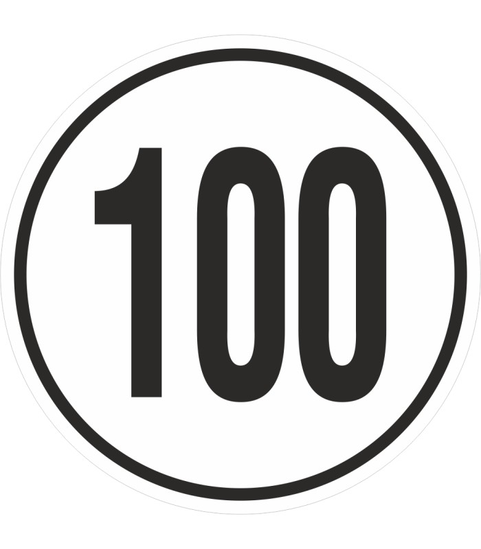 Die Geschwindigkeitsaufkleber 100 Km (weiß) sind in verschiedenen Größen erhältlich.
