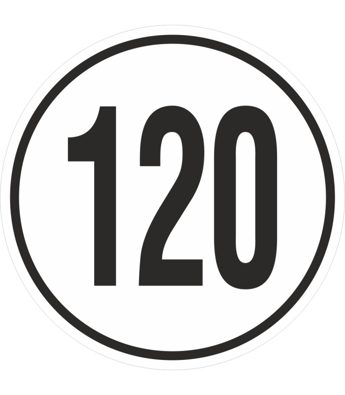 Die Geschwindigkeitsaufkleber 120 Km (weiß) sind in verschiedenen Größen erhältlich.