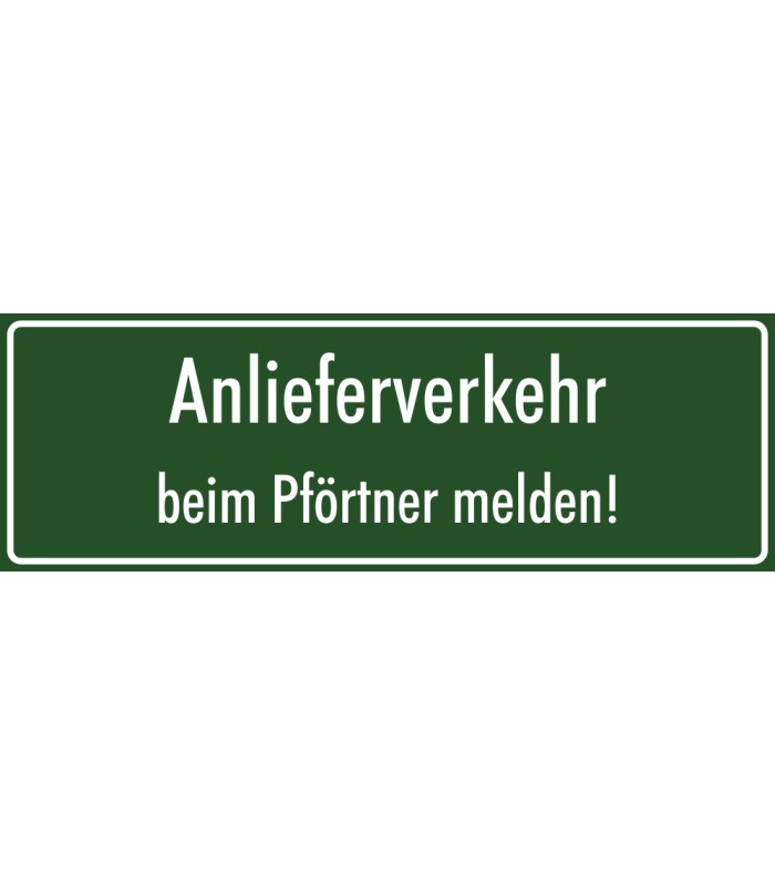 Die Aufkleber 'Anlieferverkehr beim Pförtner melden' (grün) werden aus hochwertiger Folie hergestellt und sind in verschiedenen Größen erhältlich.