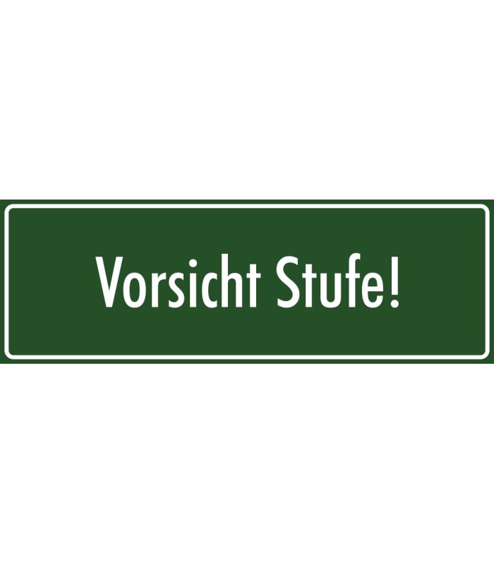 Die Aufkleber 'Vorsicht Stufe' (grün) werden aus hochwertiger Folie hergestellt und sind in verschiedenen Größen erhältlich.