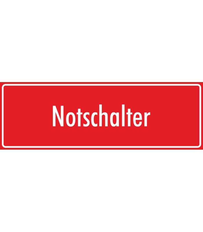 Die Aufkleber 'Notschalter' (rot) werden aus hochwertiger Folie hergestellt und sind in verschiedenen Größen erhältlich.