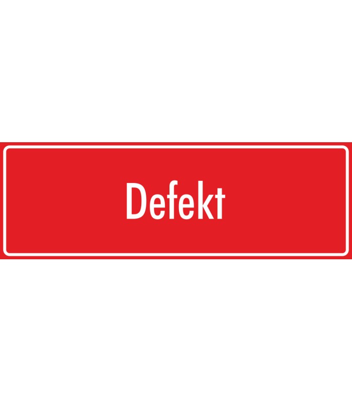 Die Aufkleber 'Defekt' (rot) werden aus hochwertiger Folie hergestellt und sind in verschiedenen Größen erhältlich.