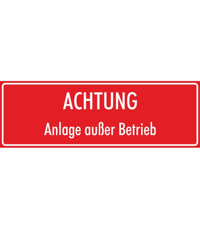 Die Aufkleber 'Achtung Anlage außer Betrieb' (rot) werden aus hochwertiger Folie hergestellt und sind in verschiedenen Größen erhältlich.
