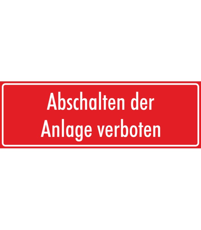 Die Aufkleber 'Abschalten der Anlage verboten' (rot) werden aus hochwertiger Folie hergestellt und sind in verschiedenen Größen erhältlich.