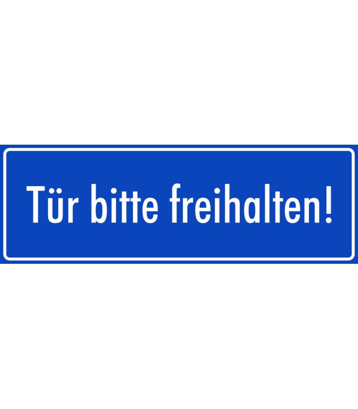 Die Schilder 'Tür bitte freihalten' (blau) werden aus hochwertigem Kunststoff hergestellt und sind in verschiedenen Größen erhältlich. Die Schilder sind sowohl für den Innen- wie Außeneinsatz geeignet.