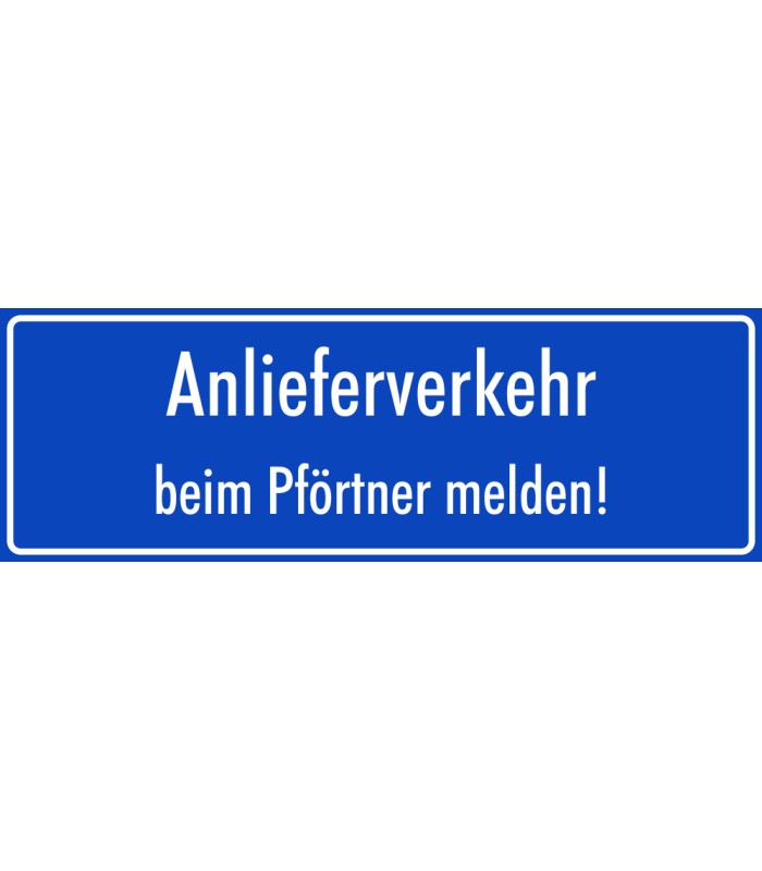 Die Schilder 'Anlieferverkehr beim Pförtner melden' (blau) werden aus hochwertigem Kunststoff hergestellt und sind in verschiedenen Größen erhältlich. Die Schilder sind sowohl für den Innen- wie Außeneinsatz geeignet.