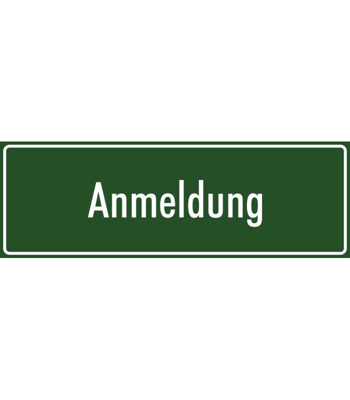 Die Schilder 'Anmeldung' (grün) werden aus hochwertigem Kunststoff hergestellt und sind in verschiedenen Größen erhältlich. Die Schilder sind sowohl für den Innen- wie Außeneinsatz geeignet.