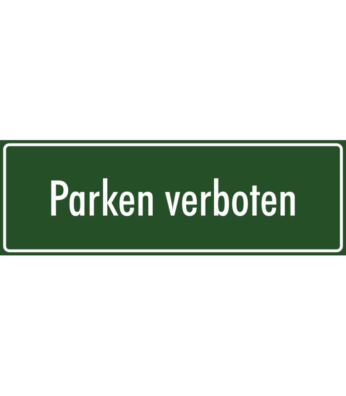Die Schilder 'Parken verboten' (grün) werden aus hochwertigem Kunststoff hergestellt und sind in verschiedenen Größen erhältlich. Die Schilder sind sowohl für den Innen- wie Außeneinsatz geeignet.