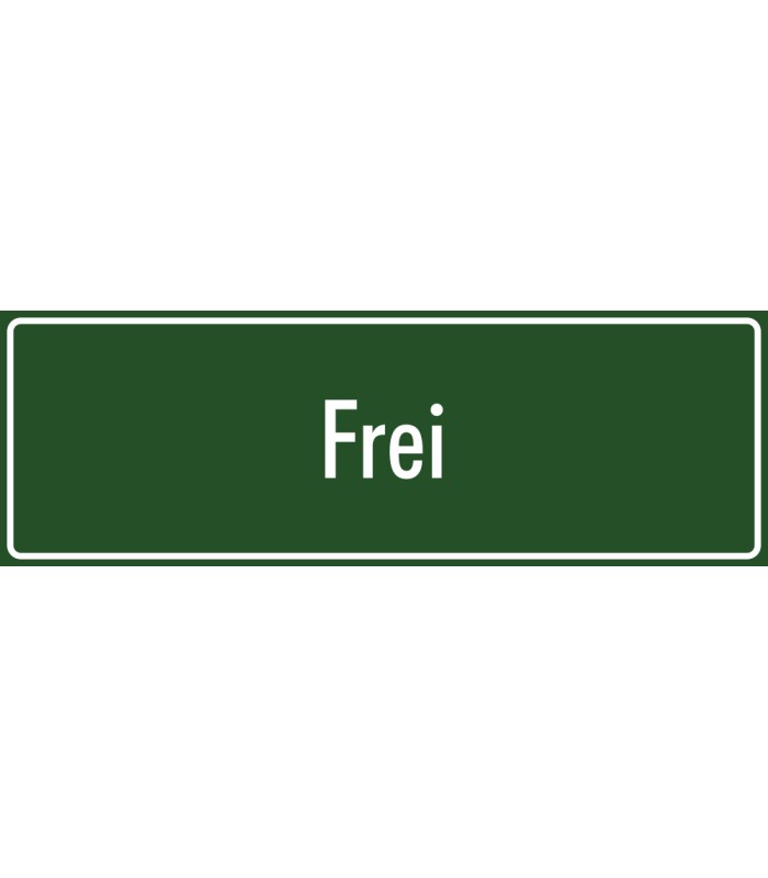 Die Schilder 'Frei' (grün) werden aus hochwertigem Kunststoff hergestellt und sind in verschiedenen Größen erhältlich. Die Schilder sind sowohl für den Innen- wie Außeneinsatz geeignet.