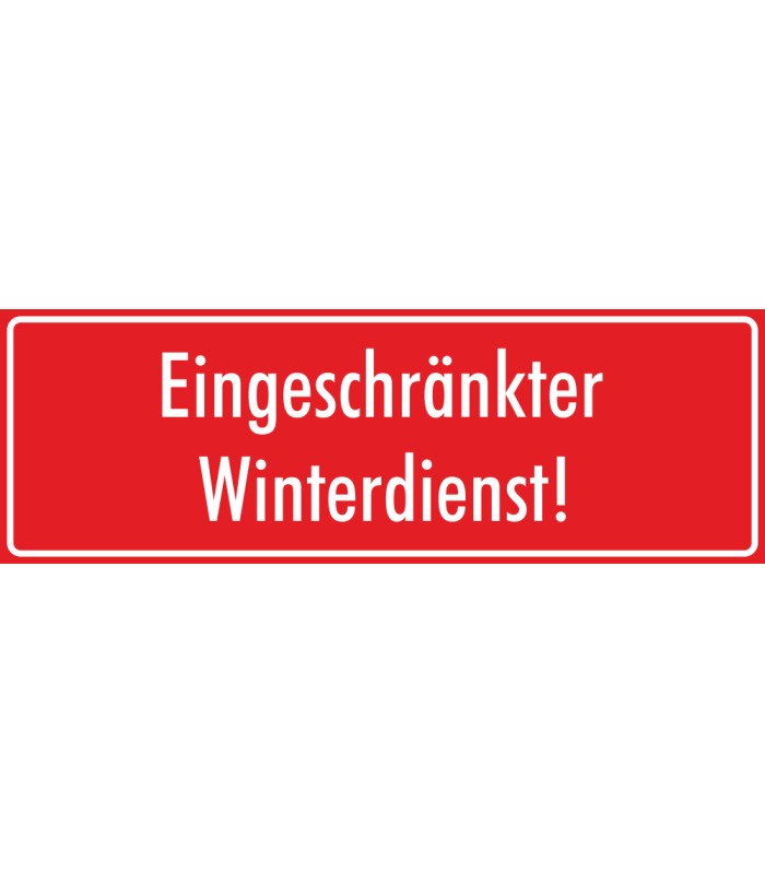 Die Schilder 'Eingeschränkter Winterdienst!' (rot) werden aus hochwertigem Kunststoff hergestellt und sind in verschiedenen Größen erhältlich. Die Schilder sind sowohl für den Innen- wie Außeneinsatz geeignet.