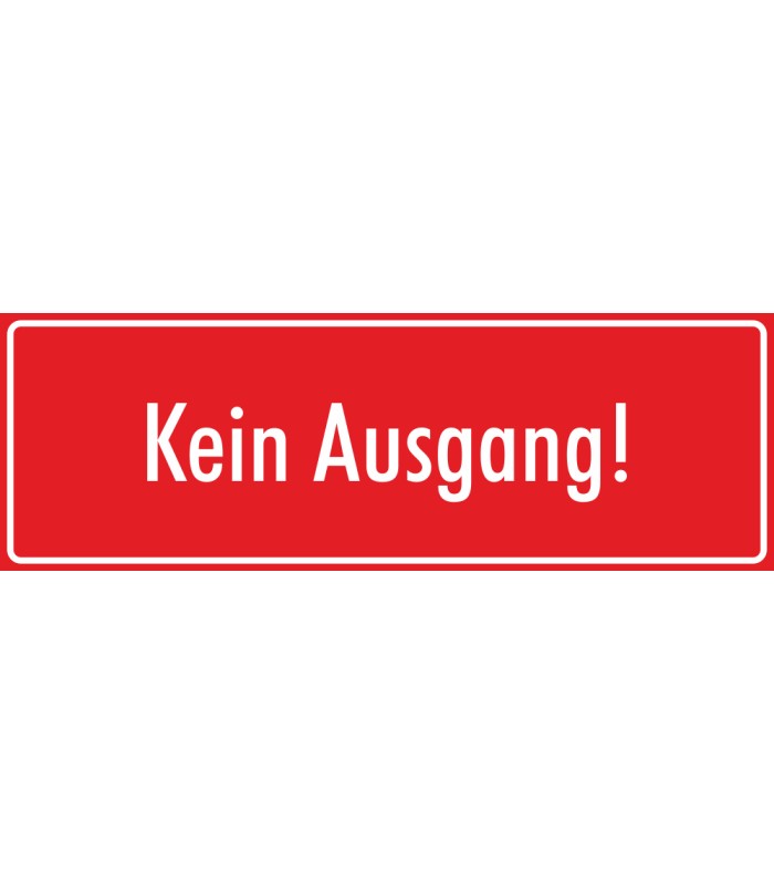Die Schilder 'Kein Ausgang' (rot) werden aus hochwertigem Kunststoff hergestellt und sind in verschiedenen Größen erhältlich. Die Schilder sind sowohl für den Innen- wie Außeneinsatz geeignet.