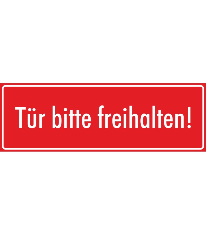 Die Schilder 'Tür bitte freihalten' (rot) werden aus hochwertigem Kunststoff hergestellt und sind in verschiedenen Größen erhältlich. Die Schilder sind sowohl für den Innen- wie Außeneinsatz geeignet.