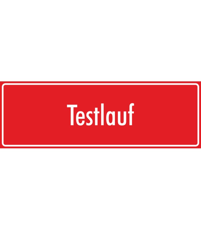 Die Schilder 'Testlauf' (rot) werden aus hochwertigem Kunststoff hergestellt und sind in verschiedenen Größen erhältlich. Die Schilder sind sowohl für den Innen- wie Außeneinsatz geeignet.