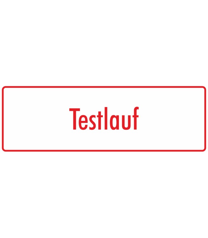 Die Schilder 'Testlauf' (weiß - rot) werden aus hochwertigem Kunststoff hergestellt und sind in verschiedenen Größen erhältlich. Die Schilder sind sowohl für den Innen- wie Außeneinsatz geeignet.