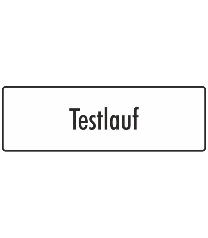 Die Schilder 'Testlauf' (weiß) werden aus hochwertigem Kunststoff hergestellt und sind in verschiedenen Größen erhältlich. Die Schilder sind sowohl für den Innen- wie Außeneinsatz geeignet.