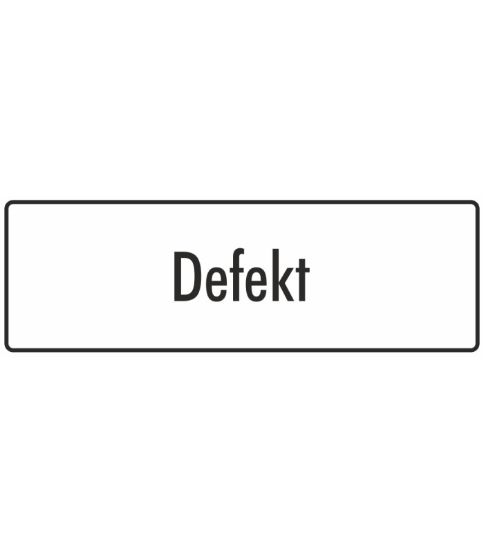 Die Schilder 'Defekt' (weiß) werden aus hochwertigem Kunststoff hergestellt und sind in verschiedenen Größen erhältlich. Die Schilder sind sowohl für den Innen- wie Außeneinsatz geeignet.