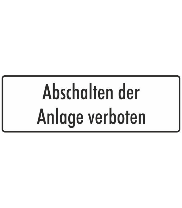 Die Schilder 'Abschalten der Anlage verboten' (weiß) werden aus hochwertigem Kunststoff hergestellt und sind in verschiedenen Größen erhältlich. Die Schilder sind sowohl für den Innen- wie Außeneinsatz geeignet.