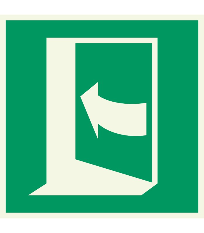 Die lumineszierenden Aufkleber 'Tur öffnet durch Aufdrücken auf der linken Seite' werden aus hochwertiger lumineszierender Folie hergestellt und sind für den Inneneinsatz geeignet.