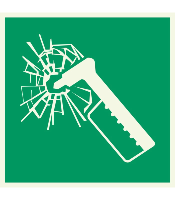 Die lumineszierenden Schilder 'Notfallhammer' werden aus hochwertigem 2 mm dicken weißen Kunststoff hergestellt und sind in verschiedenen Größen erhältlich.