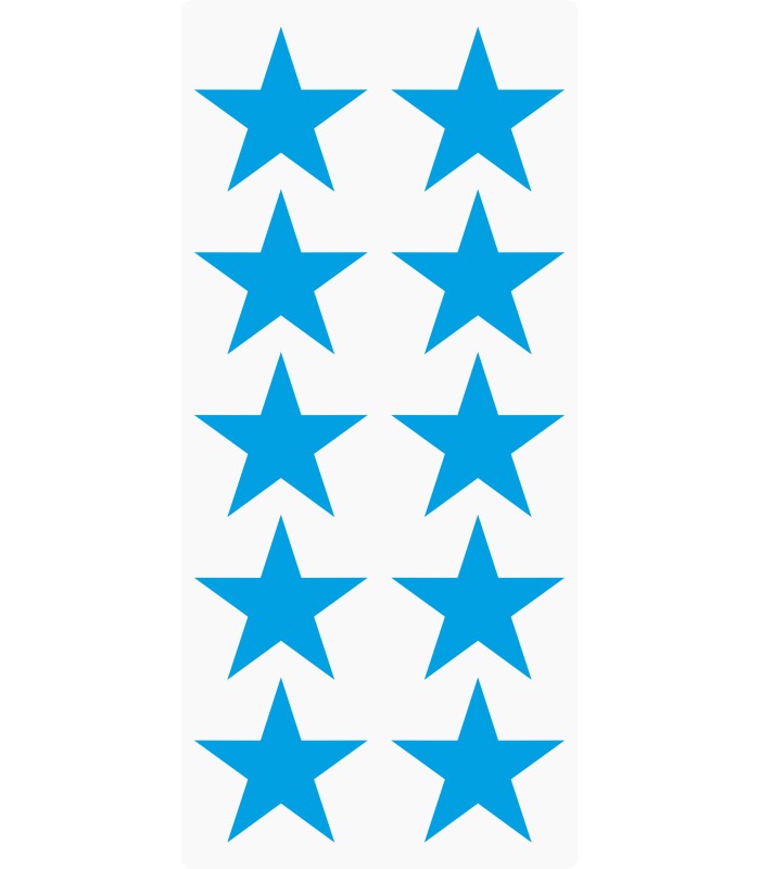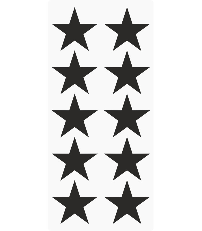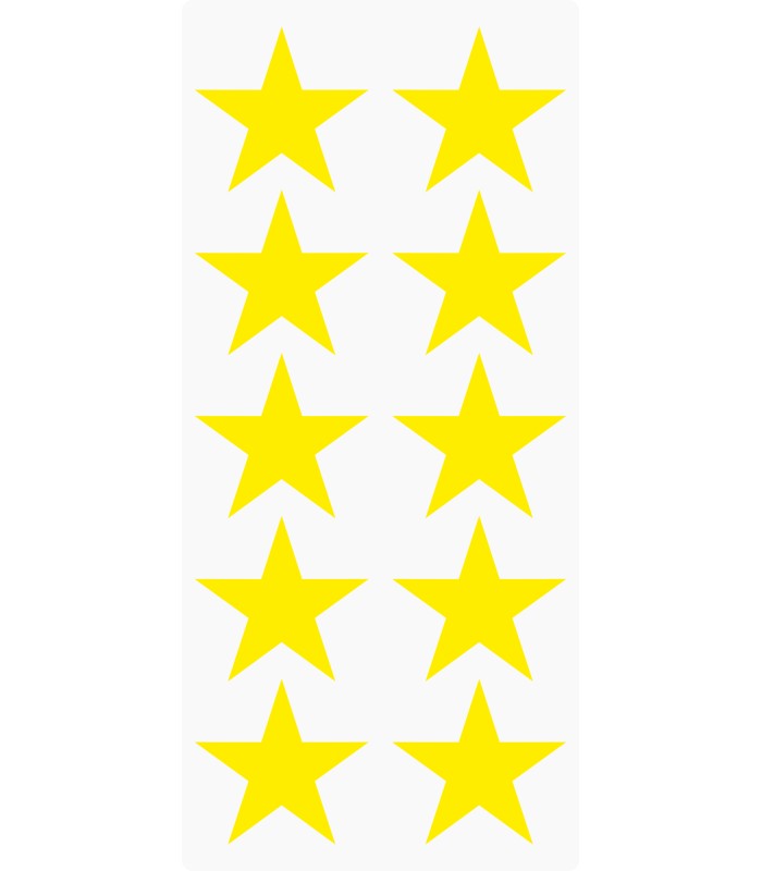 Die Aufkleber haben einen Durchmesser von 50 mm und auf einem Bogen befinden sich 10 Markierungsaufkleber Stern.