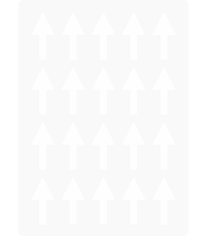 Die Aufkleber haben einen Durchmesser von 25 mm und auf einem Bogen befinden sich 24 Markierungsaufkleber Pfeil.