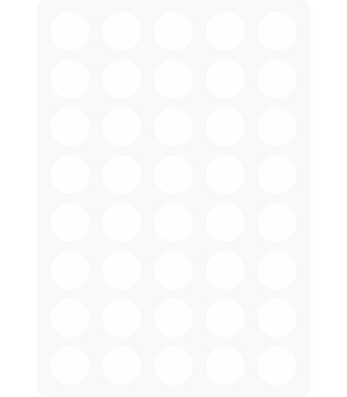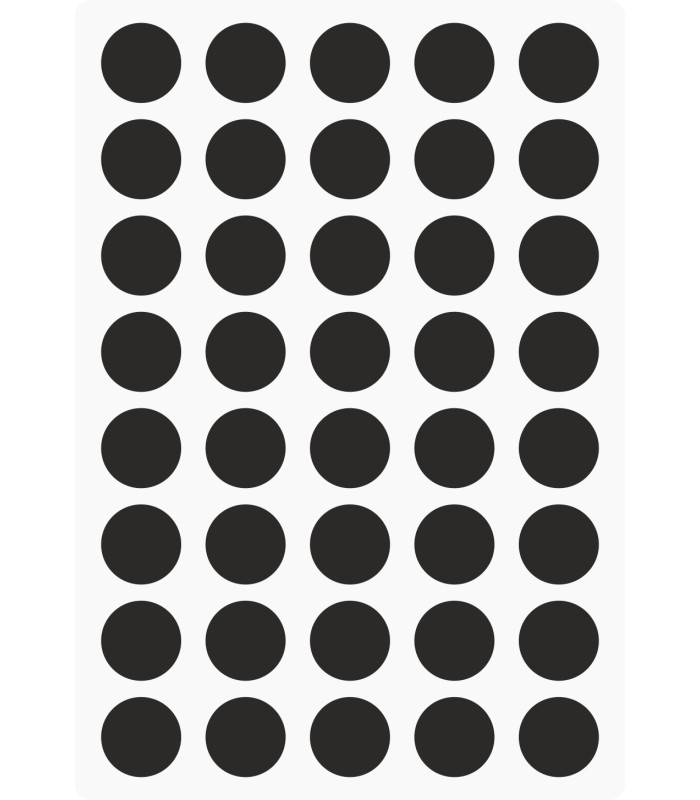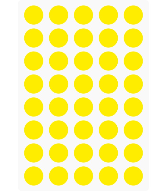 Die Aufkleber haben einen Durchmesser von 15 mm und auf einem Bogen befinden sich 40 Markierungsaufkleber runde.