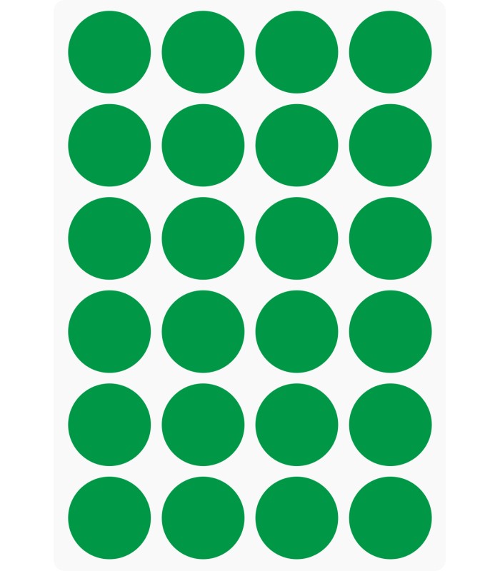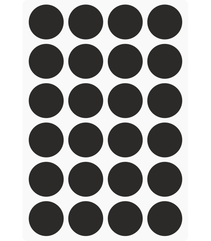 Die Aufkleber haben einen Durchmesser von 25 mm und auf einem Bogen befinden sich 24 Markierungsaufkleber runde.