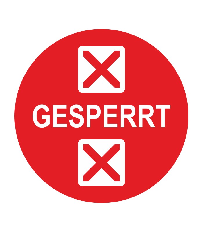 Prüfplaketten mit dem Text 'Gesperrt', in verschiedenen Größen erhältlich.