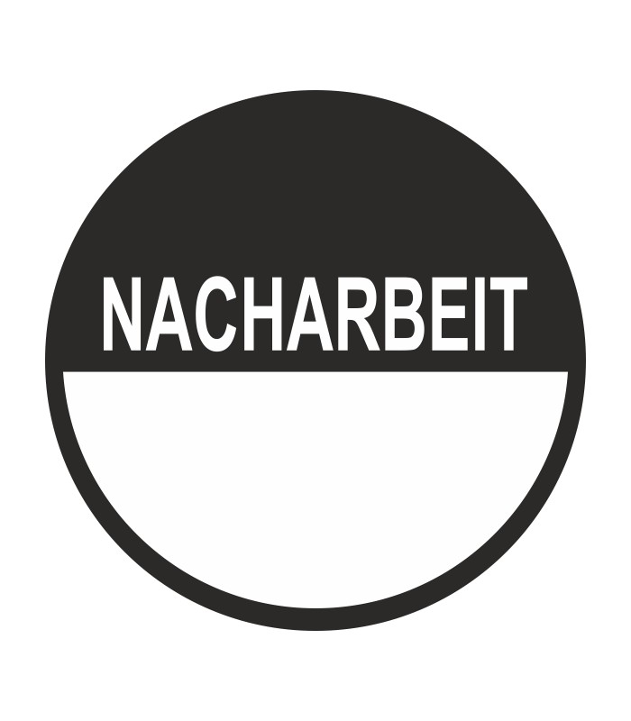 Beschreibbare Prüfplaketten mit dem Text 'Nacharbeit', in verschiedenen Größen erhältlich.