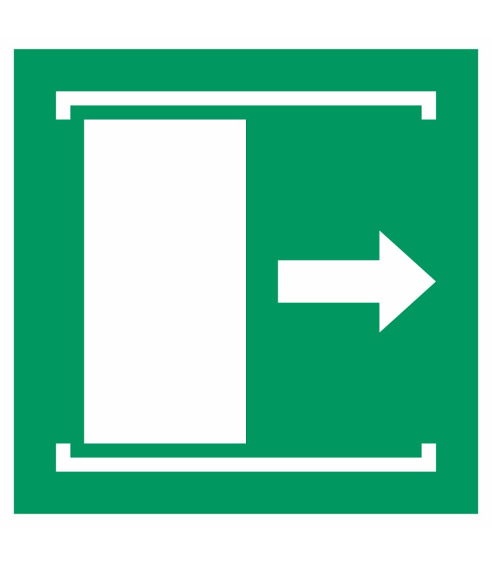 Die Schilder 'Schiebetür öffnet nach rechts' gem. ISO-7010 werden aus hochwertigem weißem Kunststoff hergestellt und sind in unterschiedlichen Größen erhältlich.