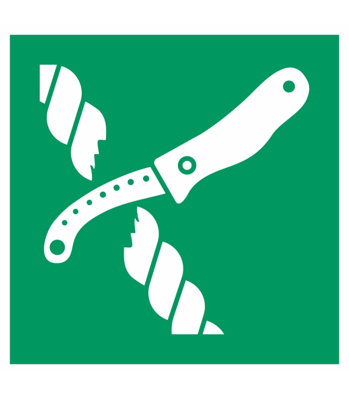 Die Schilder 'Messer für Rettungsfloß' gem. ISO-7010 werden aus hochwertigem weißem Kunststoff hergestellt und sind in unterschiedlichen Größen erhältlich.