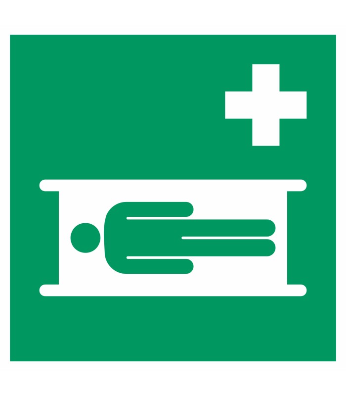 Die Schilder 'Krankentrage' gem. ISO-7010 werden aus hochwertigem weißem Kunststoff hergestellt und sind in unterschiedlichen Größen erhältlich.