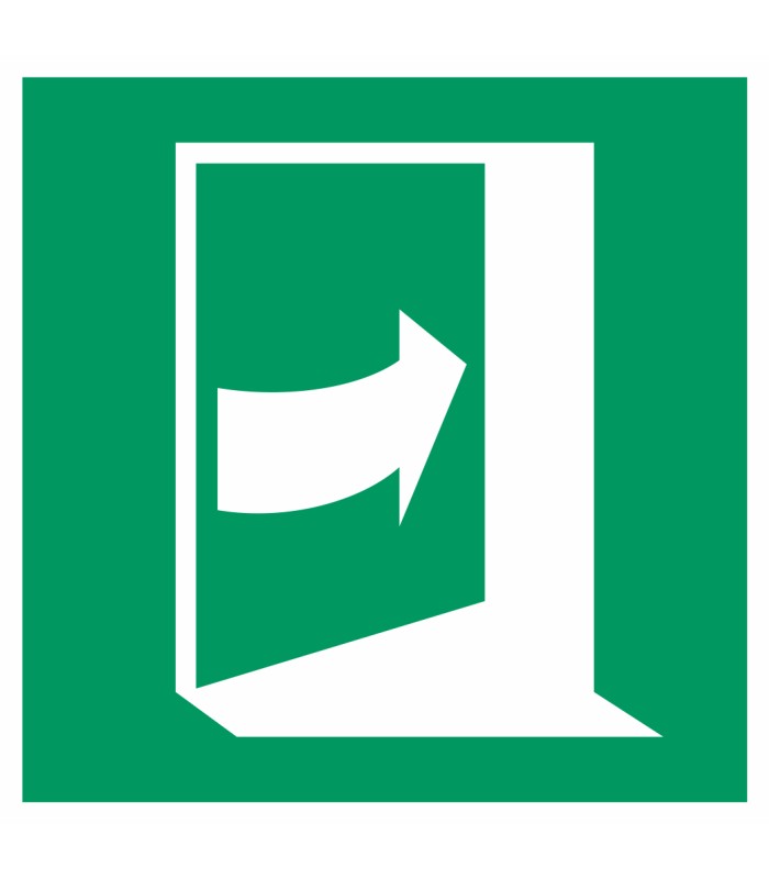 Die Schilder 'Tür öffnet durch Aufdrücken auf der rechten Seite' gem. ISO-7010 werden aus hochwertigem weißem Kunststoff hergestellt und sind in unterschiedlichen Größen erhältlich.
