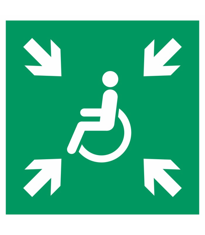 Die Aufkleber 'Vorläufige Evakuierungsstelle' gem. ISO-7010 sind in verschiedenen Größen und auch spiegelverkehrt erhältlich.