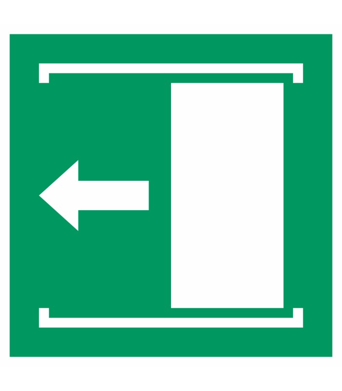 Die Aufkleber 'Schiebetür öffnet nach rechts' gem. ISO-7010 sind in verschiedenen Größen und auch spiegelverkehrt erhältlich.