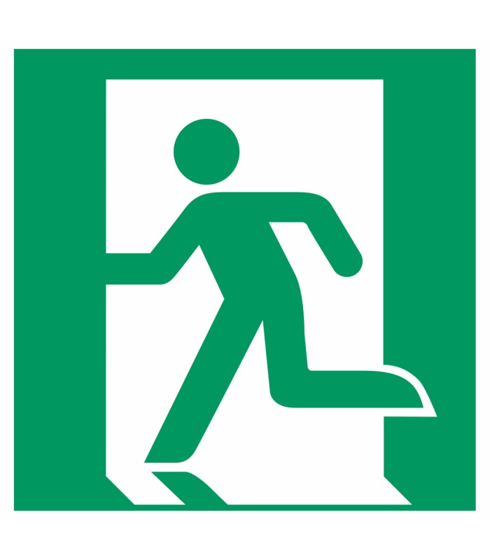 Die Aufkleber 'Notausgang (rechts)' gem. ISO-7010 sind in verschiedenen Größen und auch spiegelverkehrt erhältlich.